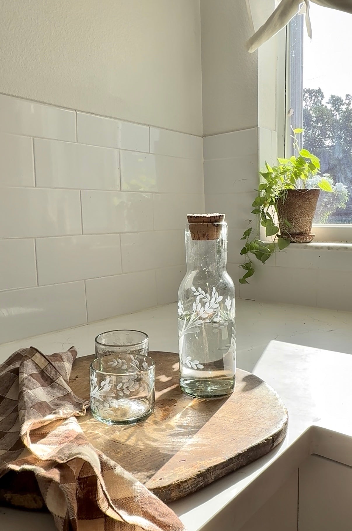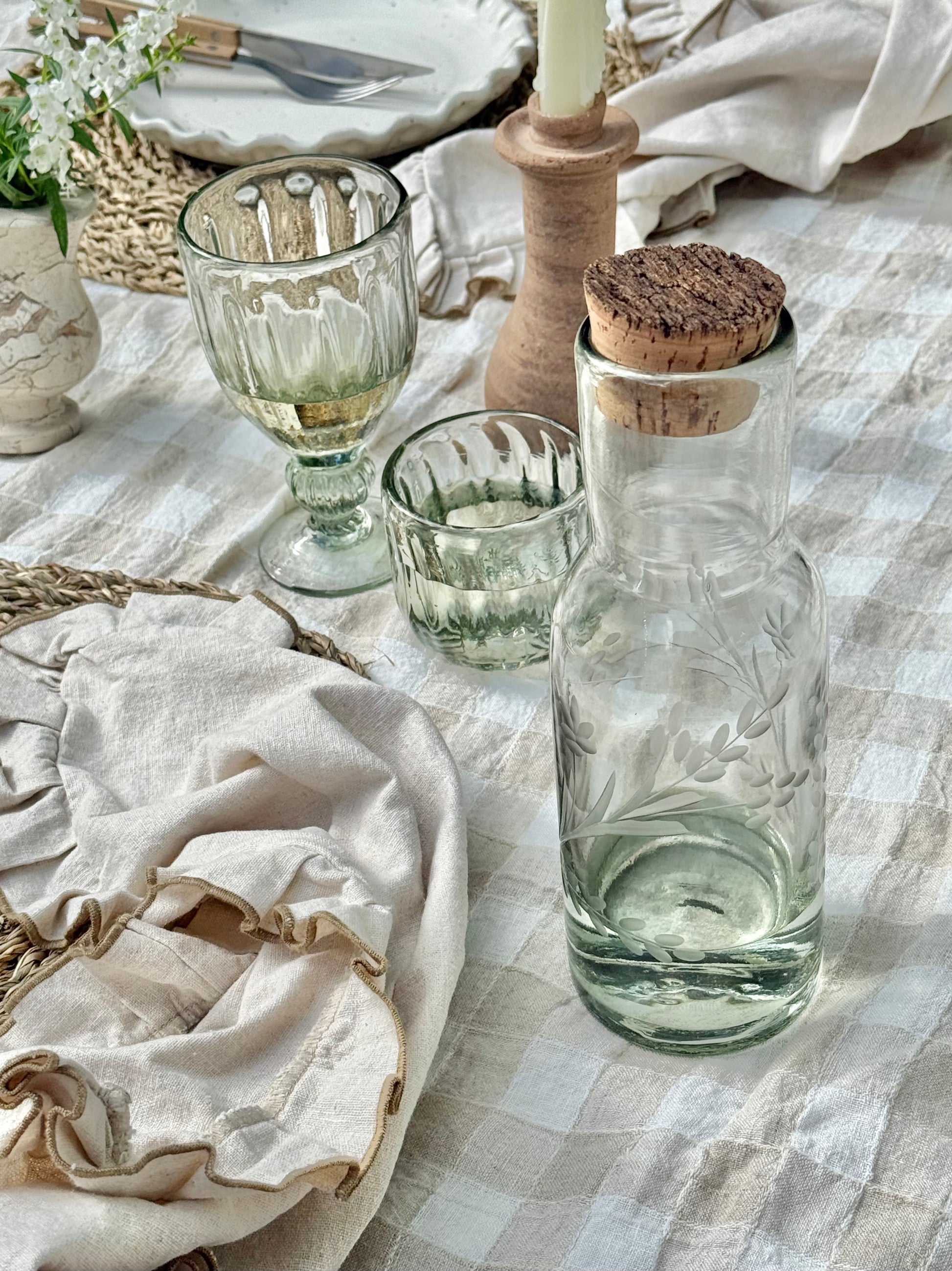 Hand-etched Carafe with Bark Top