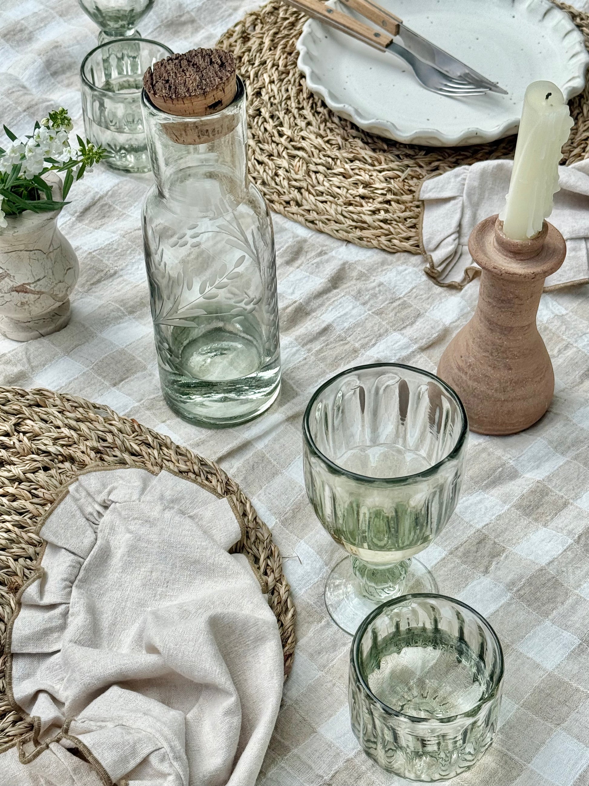 - Material: 100% Recycled Glass and Natural Raw Cork