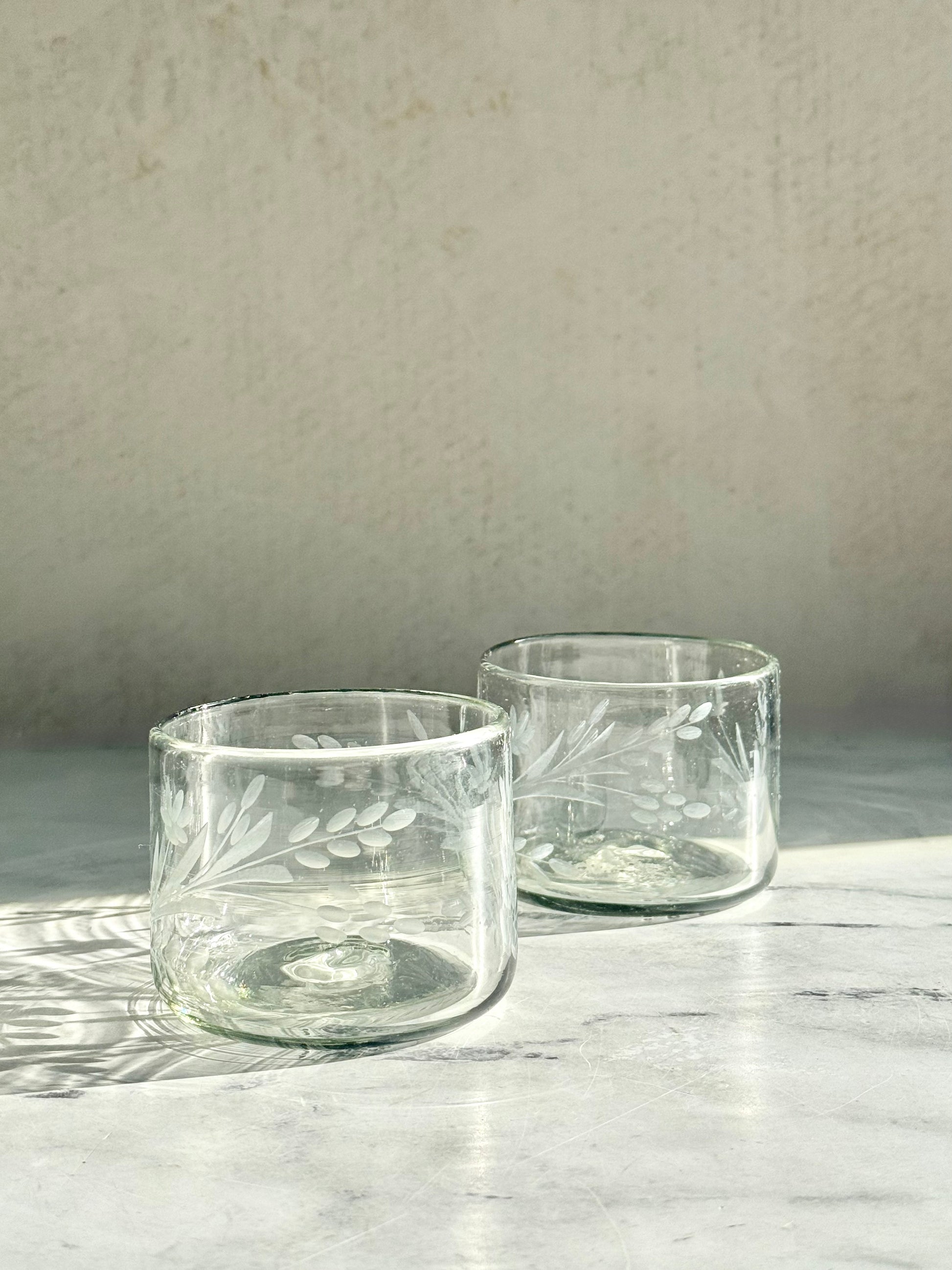Hand-etched Short Glass