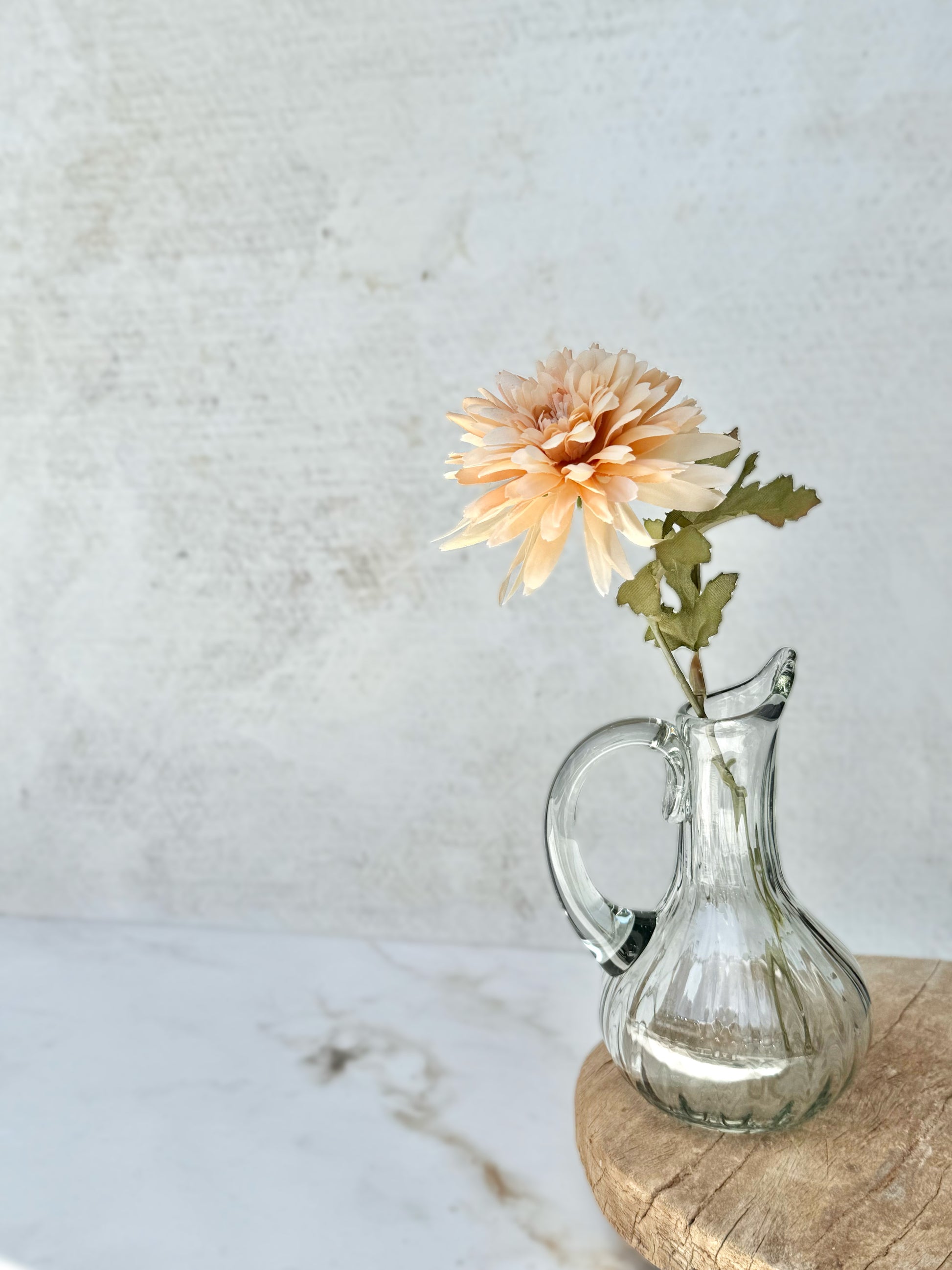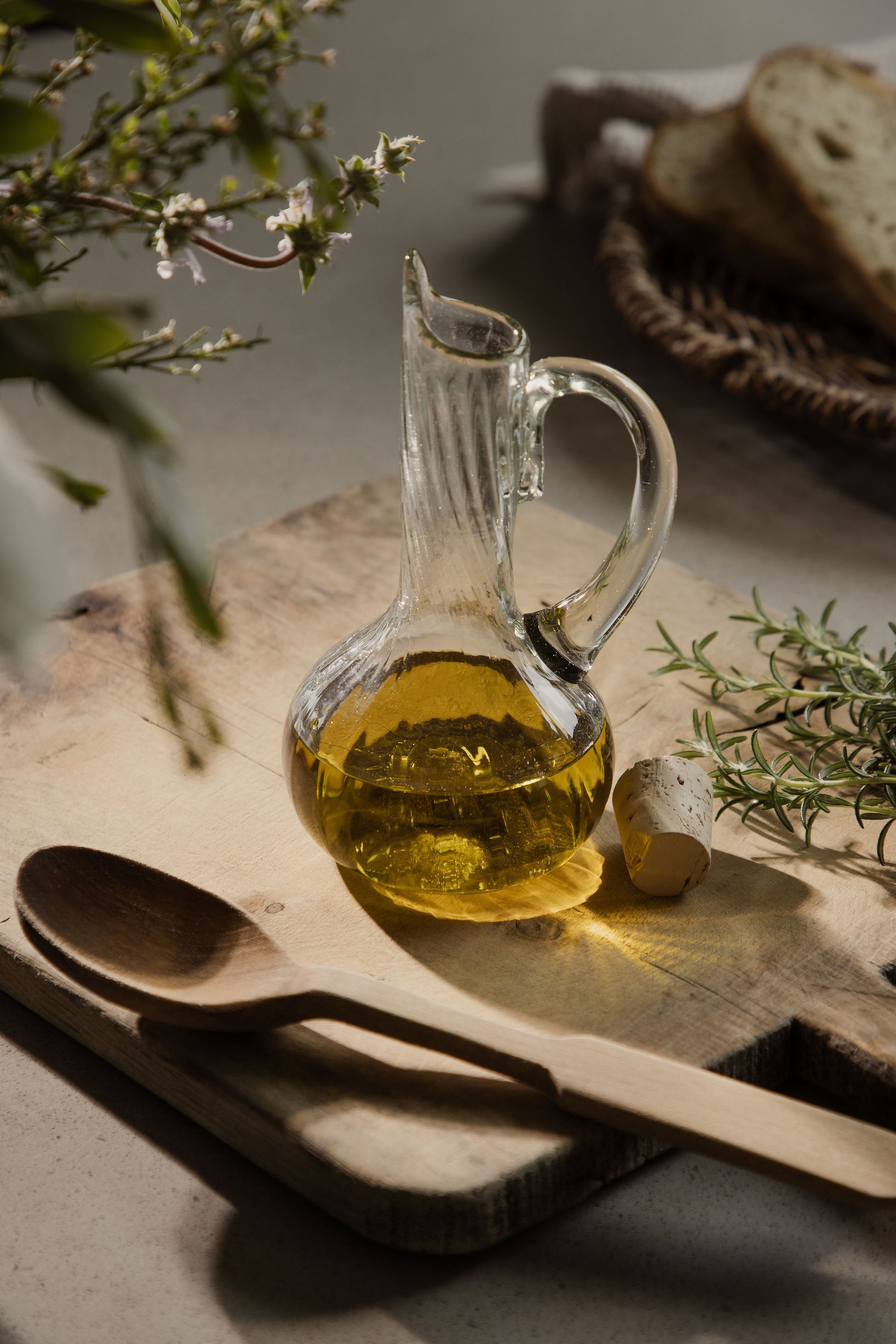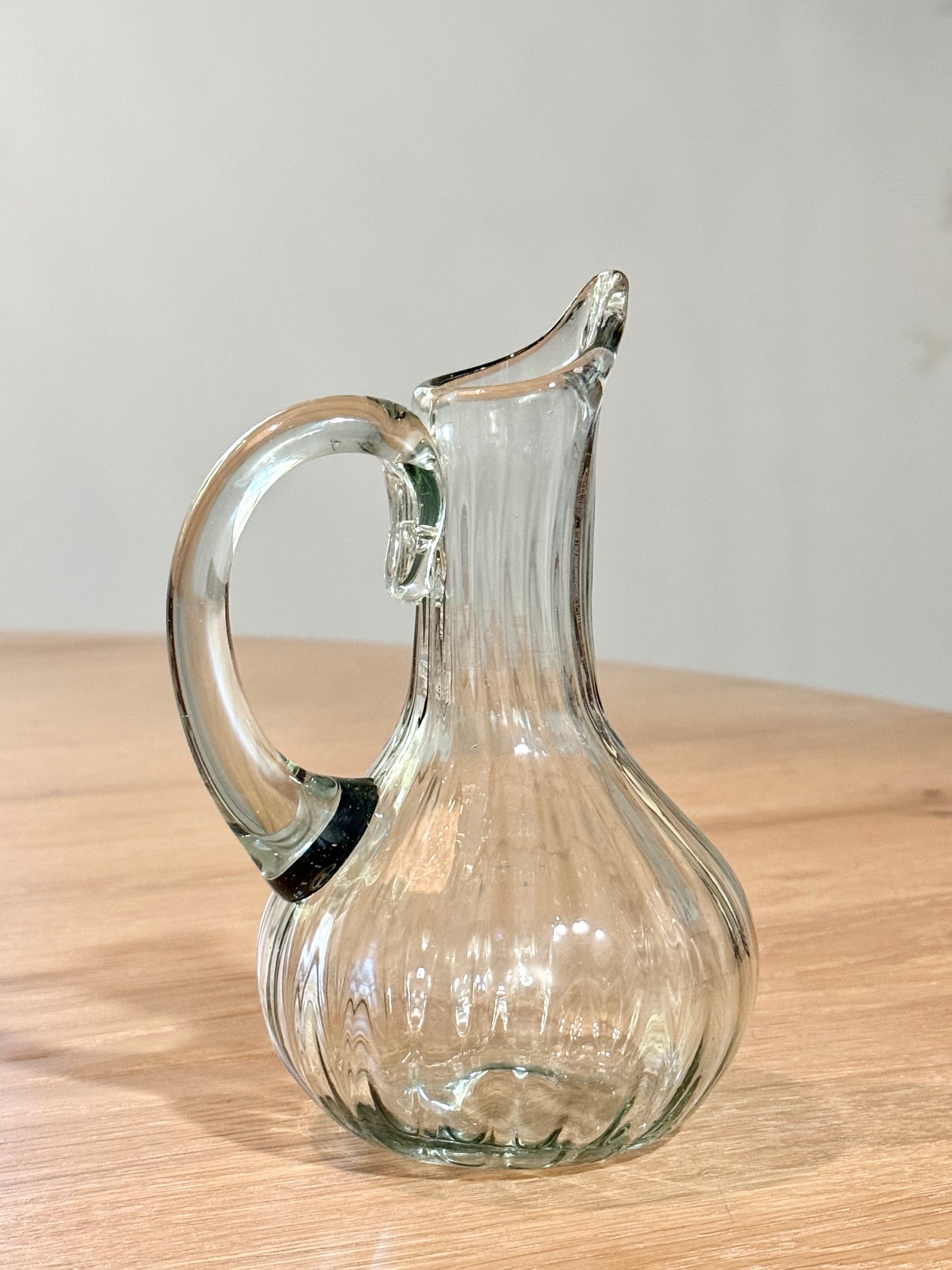 Crafted from 100% recycled glass, with its subtle ribbed texture and shape that calls to mind rustic Mediterranean antiques, this handblown cruet is a charming and practical addition to your kitchen.